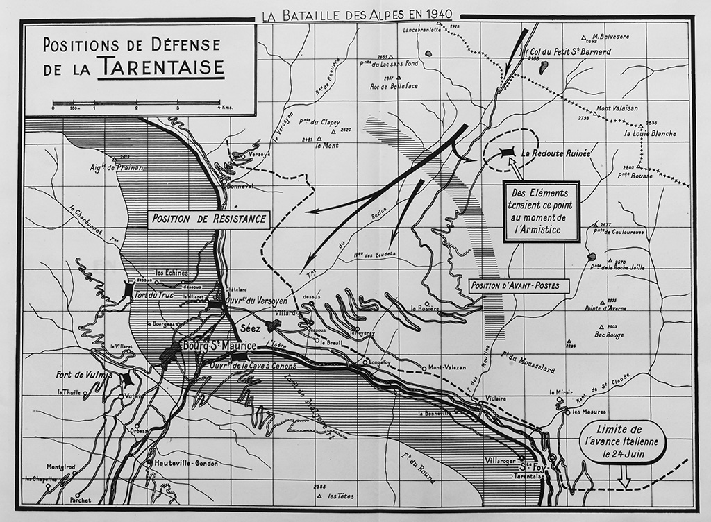NB – Construit en 1913, le fort de Courbaton soutient les avant-postes du col du Petit-Saint-Bernard en juin 1940.