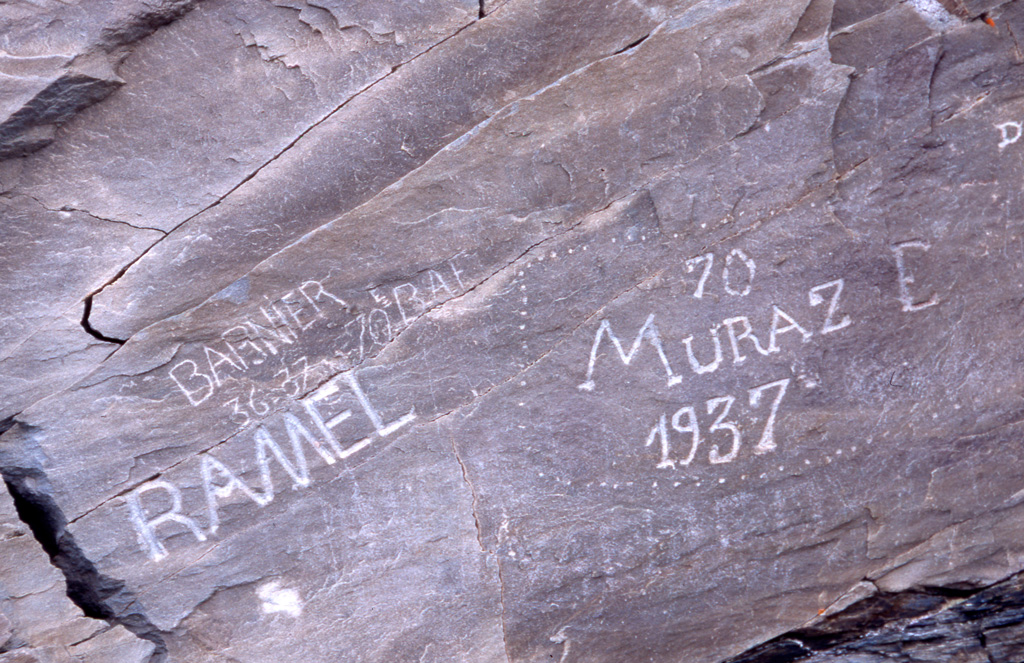 La Redoute Ruinée : noms de soldats alpins appartenant au 70e BAF gravées dans la roche